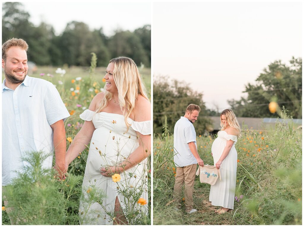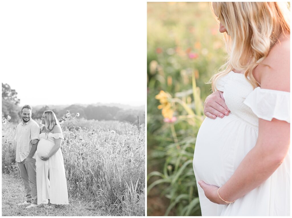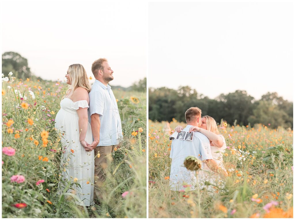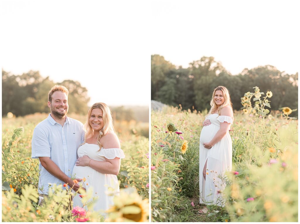 Their maternity session took place on a dreamy August evening at Wildflower Overlook. The sun dipped low behind the fields, casting that perfect warm glow over rows of golden petals. Alyssa was absolutely radiant, and you could feel the joy and excitement between her and Rob as they prepared to meet their little one. Every laugh, every gentle moment. It all felt like a quiet celebration of the life they were about to welcome.