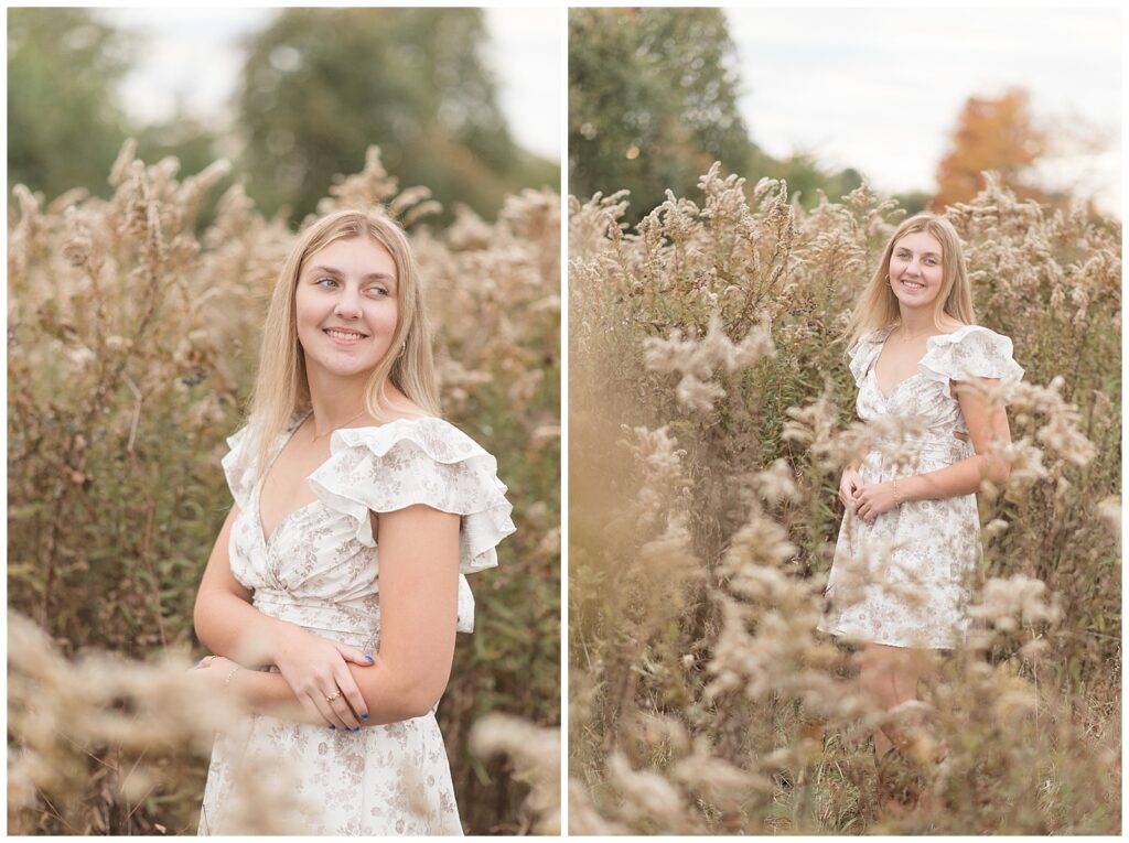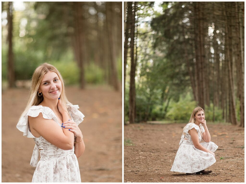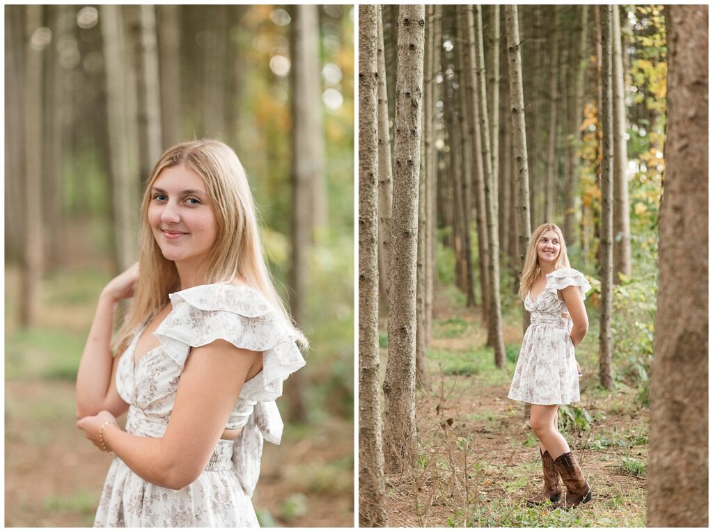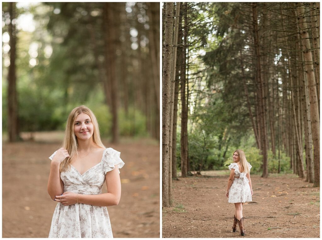 We started the session in one of my favorite spots: the tree-lined paths and open fields of Overlook Park. Tori wore a white dress with cowgirl boots. The combination of soft Fall tones with her bright personality made every frame a favorite. As we wandered through the park, her mom was cheering her on from behind the camera and making sure every smile was as genuine as it could be. I always love when parents come along. Those moments of laughter between them are some of my favorite parts to capture.